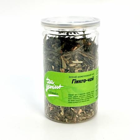 Гінкго-чай – ароматизований зелений чай з лимонною травою, листям гінкго, цедрою апельсина і коренем женьшеню. Цікавий факт: листя гінкго використовується в медицині для покращення мозкової діяльності.
