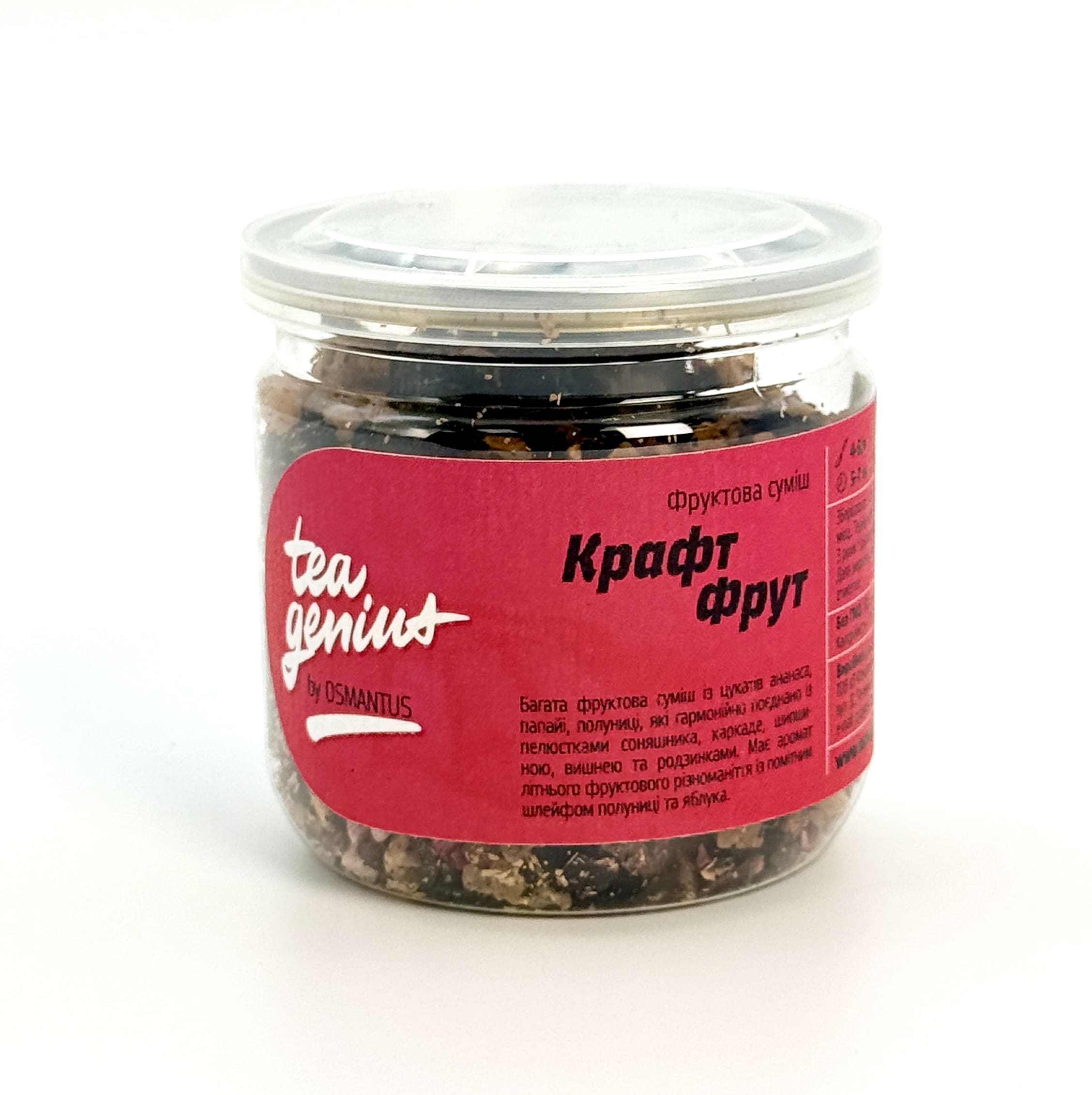 Разнообразие компонентов чая Крафт-Фрут – это предложение выйти за пределы привычного вкуса. Чайный напиток из фруктовой смеси, в составе которой цукаты ананаса, папайи и клубники гармонично сочетаются с лепестками подсолнечника, каркаде, шиповником, вишней и изюмом, имеет живой освежающий вкус.