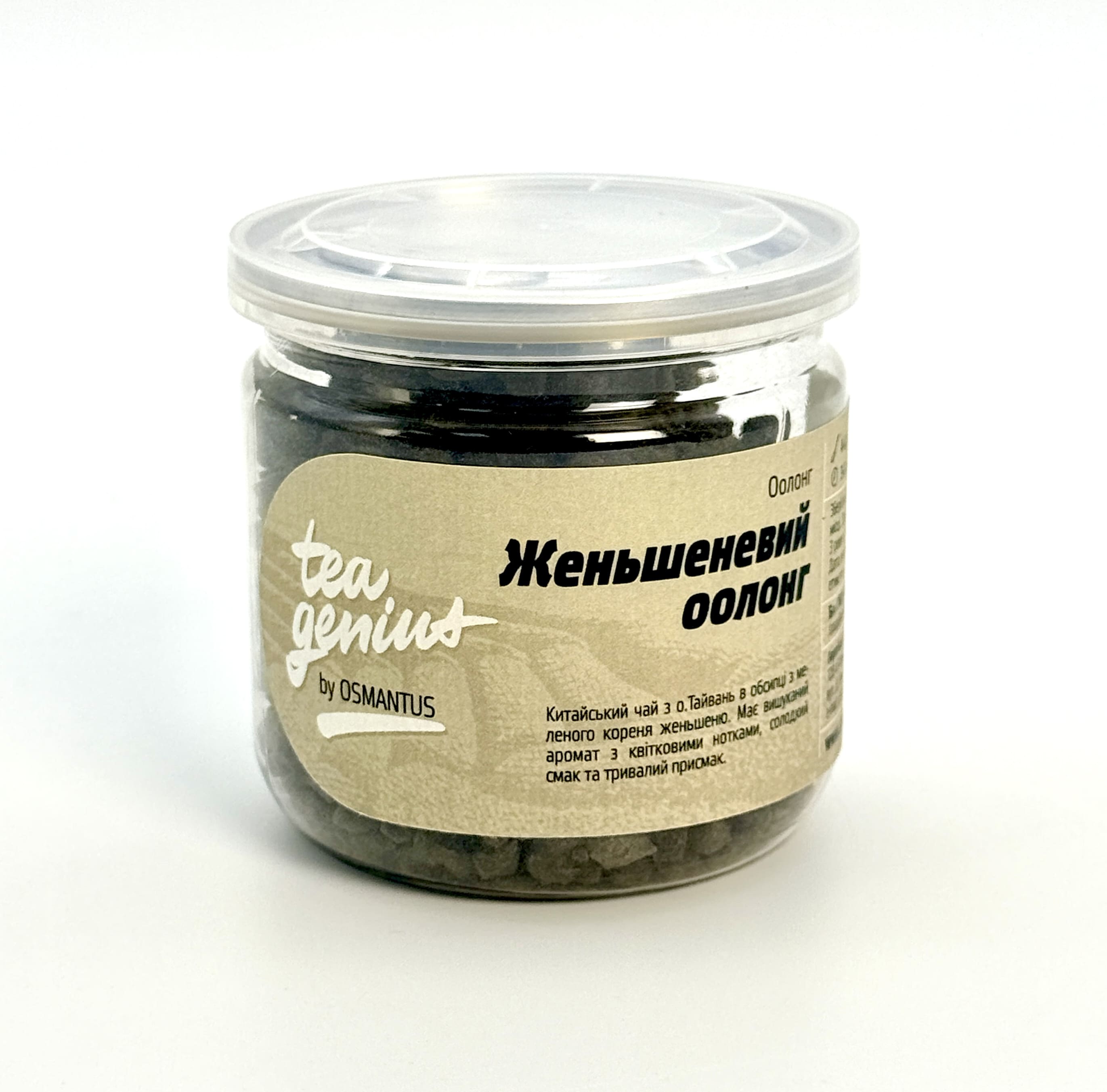 Китайский чай "Женьшеневый оолонг" с о.Тайвань в обсыпке из молотого корня женьшеня. Имеет изысканный аромат с цветочными нотками, сладкий вкус и длительный привкус.