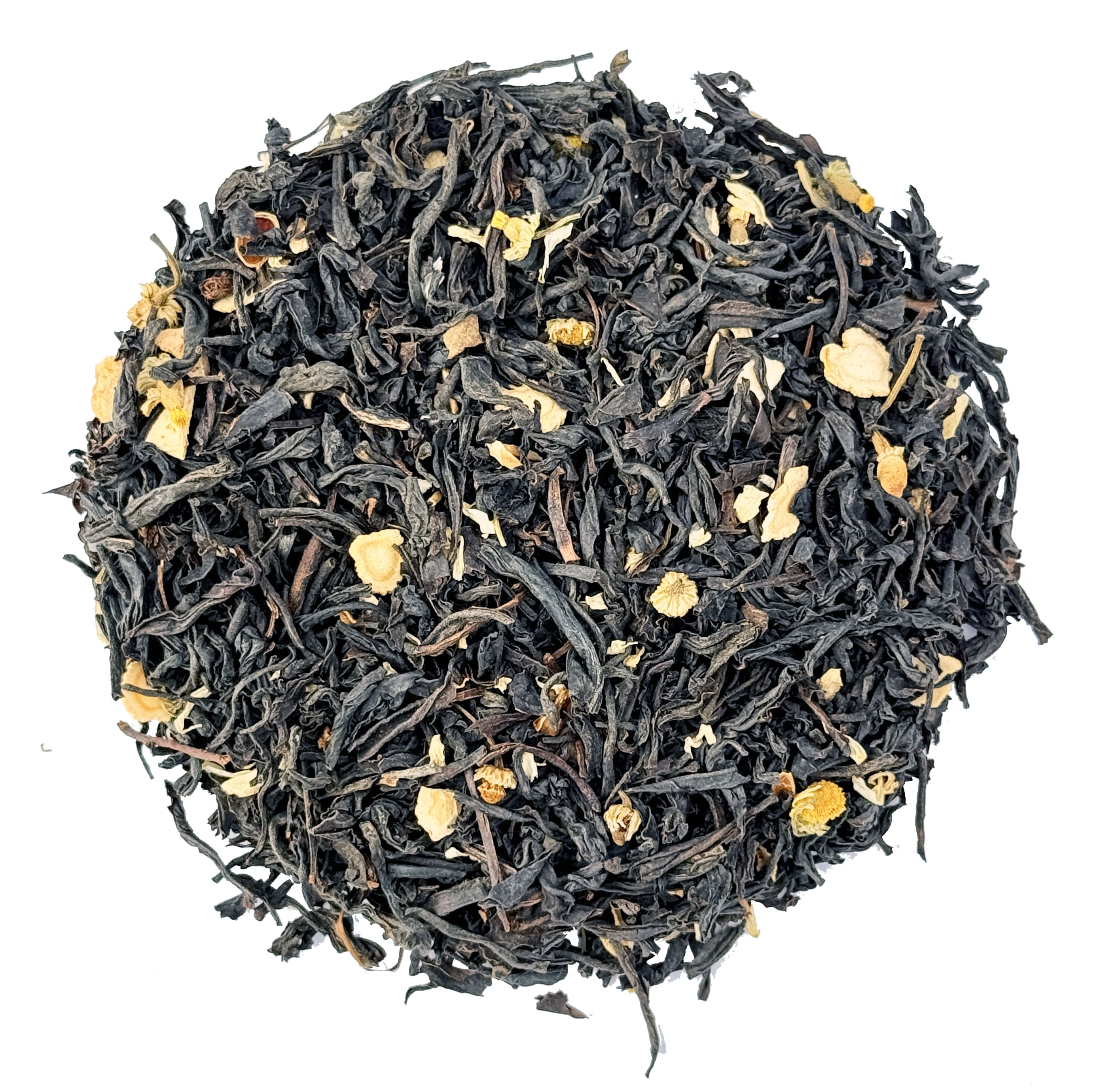 Ароматний чорний чай із цитрусовими нотками вмістом ромашки та лимонної цедри, які дбайливо посилюють сильний тонізуючий ефект кореню женьшеню і підкреслюють трав'яні мотиви.